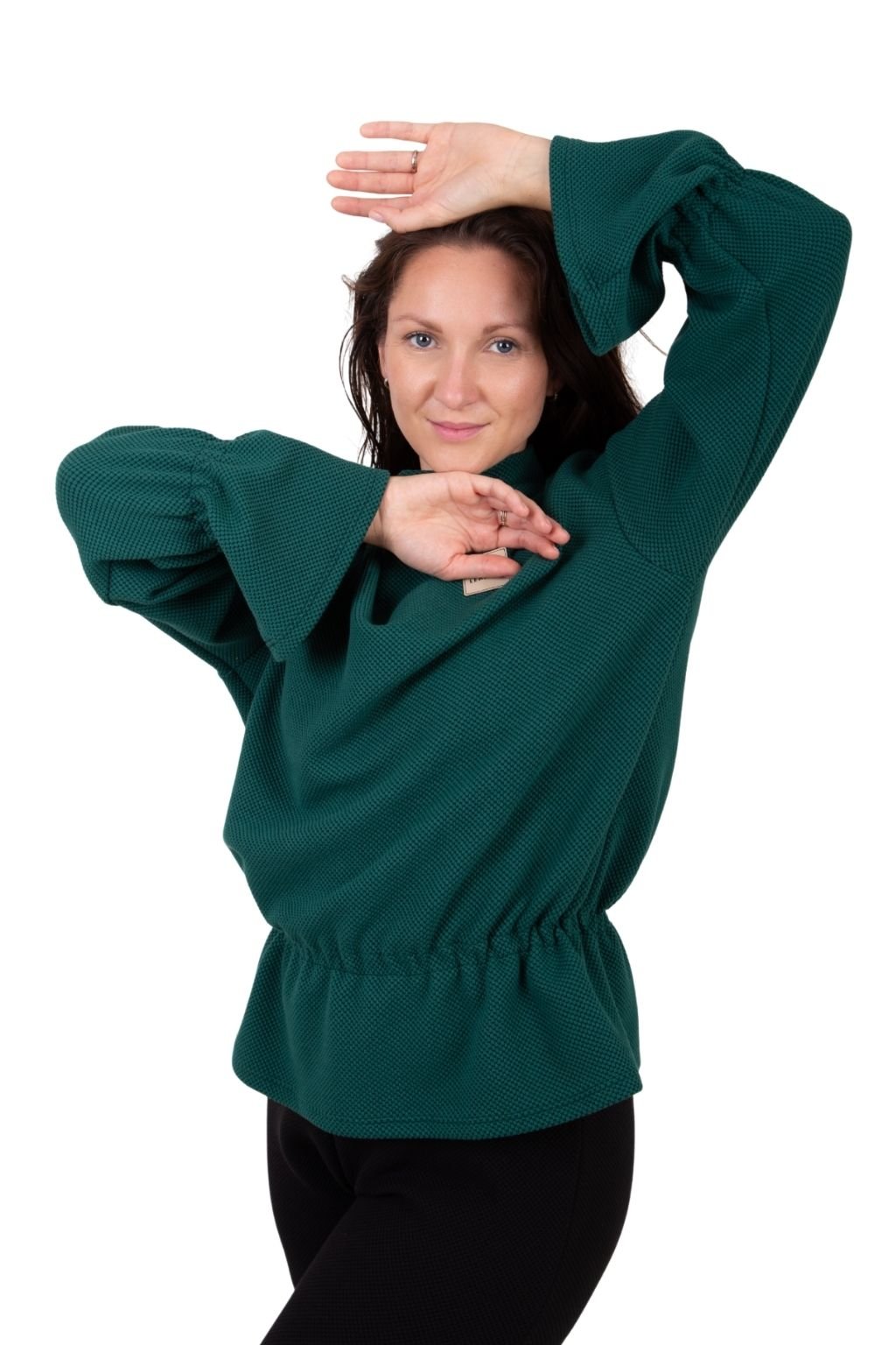 Objevte dokonalé spojení minimalistického stylu a pohodlí. Představujeme vám elegantní designovou dámskou mikinu s volány, která se stane vaším oblíbeným kouskem pro každodenní nošení. Mikina je vyrobena z kvalitní strukturované látky s elastanem s 3D efektem, který dodává materiálu zajímavou texturu a hloubku. Elastická pletenina v příjemném materiálovém provedení zaručuje perfektní přilnavost a volnost pohybu po celý den. Mikinu můžete zkombinovat s úzkou sukní nebo rozšířenými kalhotami. A samozřejmě vše vymazleno a ušito v naší lehárkové šicí dílně paní Dášou. A pozor, od každého designu šijeme jen pár kousků, prostě limitky:)