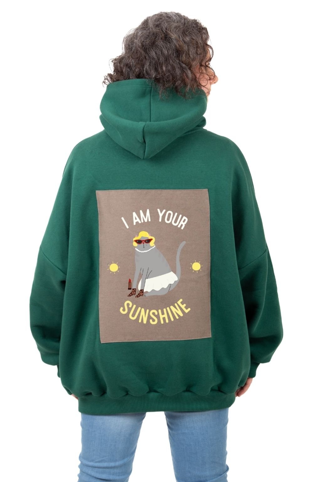 Dámská oversized mikina s kapucí lahvově zelená SUNSHINE