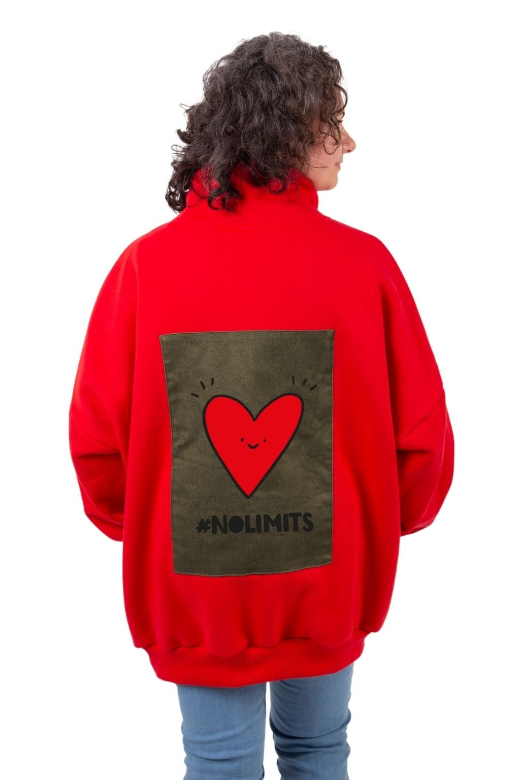 Dámská oversized mikina s rolákem červená SRDCE PLNÉ