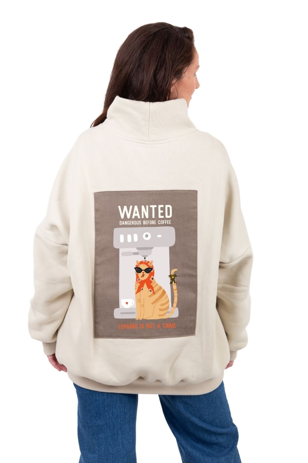 Dámská oversized mikina s rolákem krémová KÁVOVAR