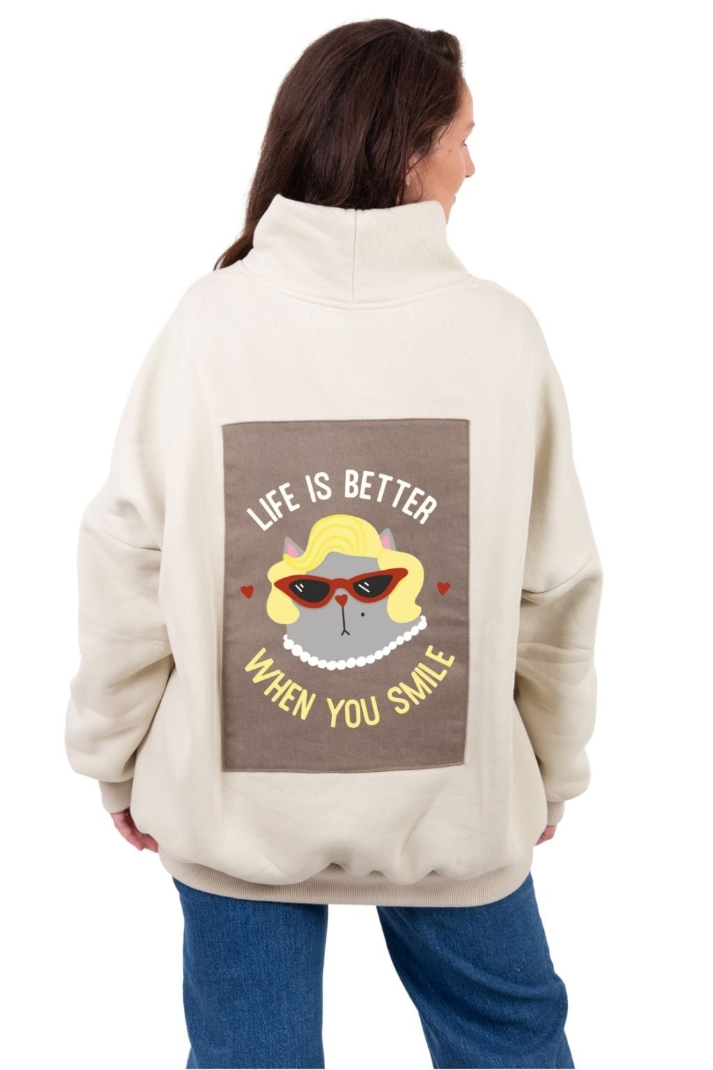 Dámská oversized mikina s rolákem krémová SMILE