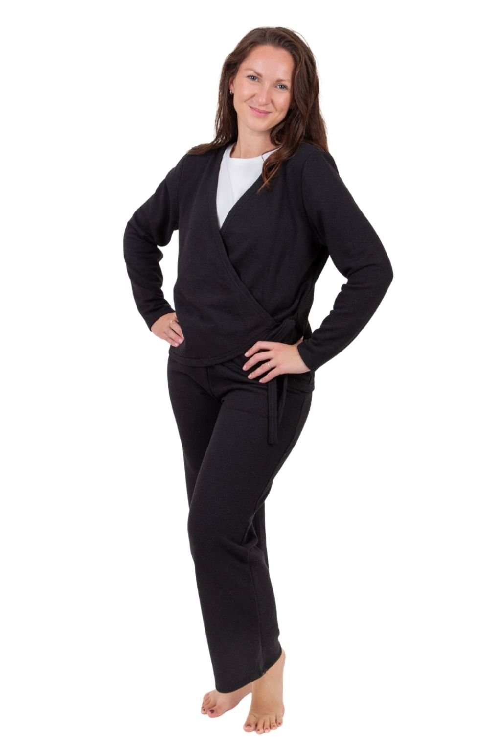 Dámská souprava ZAVINOVACÍ SVETROVÁ MIKINA A KALHOTY černá piké