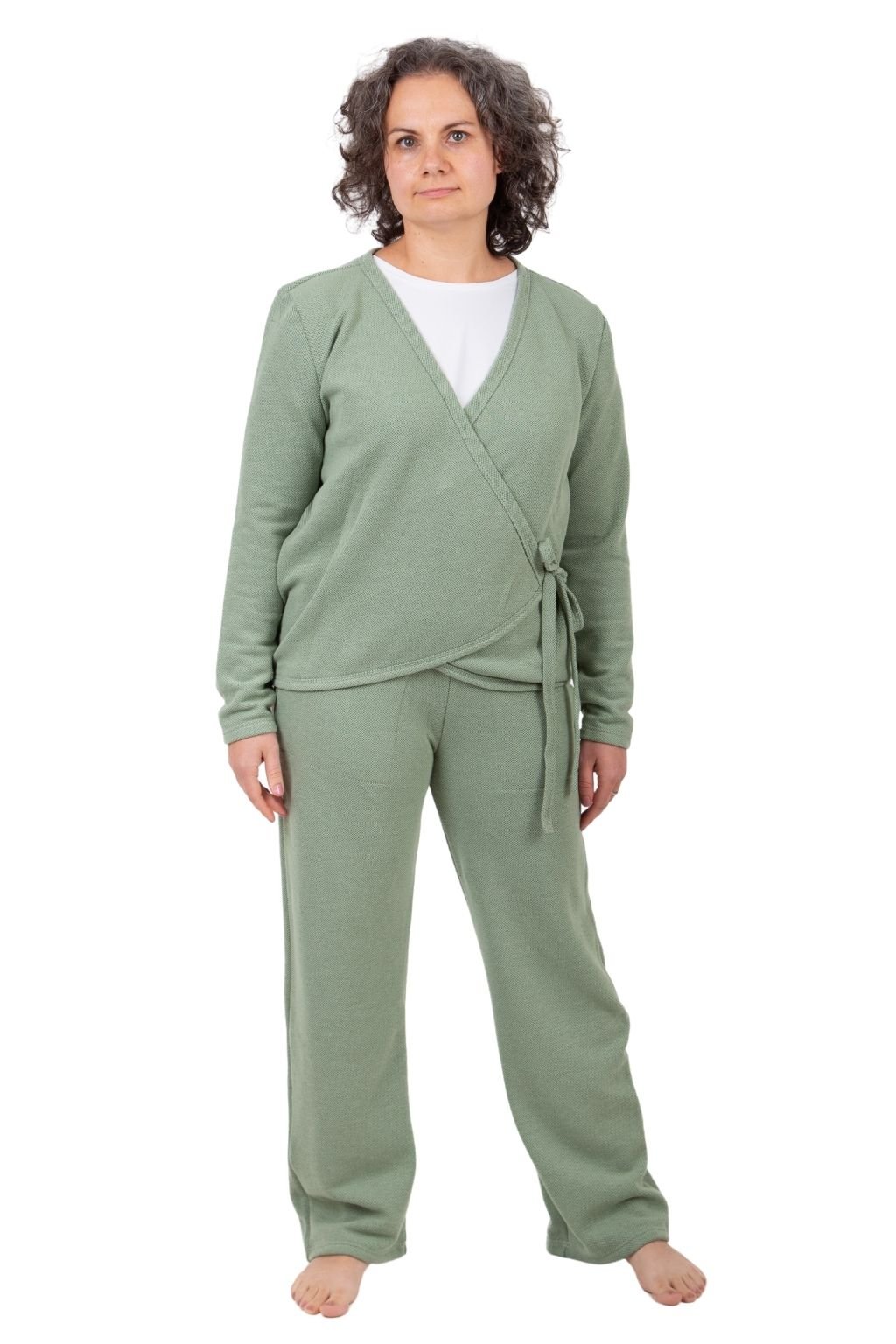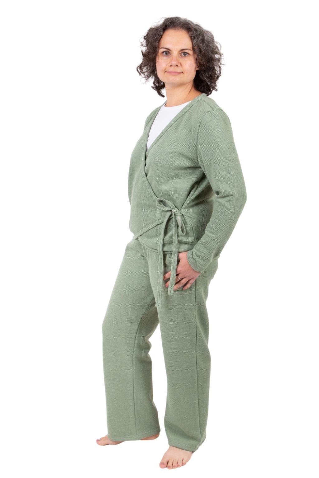 Dámská souprava ZAVINOVACÍ SVETROVÁ MIKINA A KALHOTY eukalypt piké