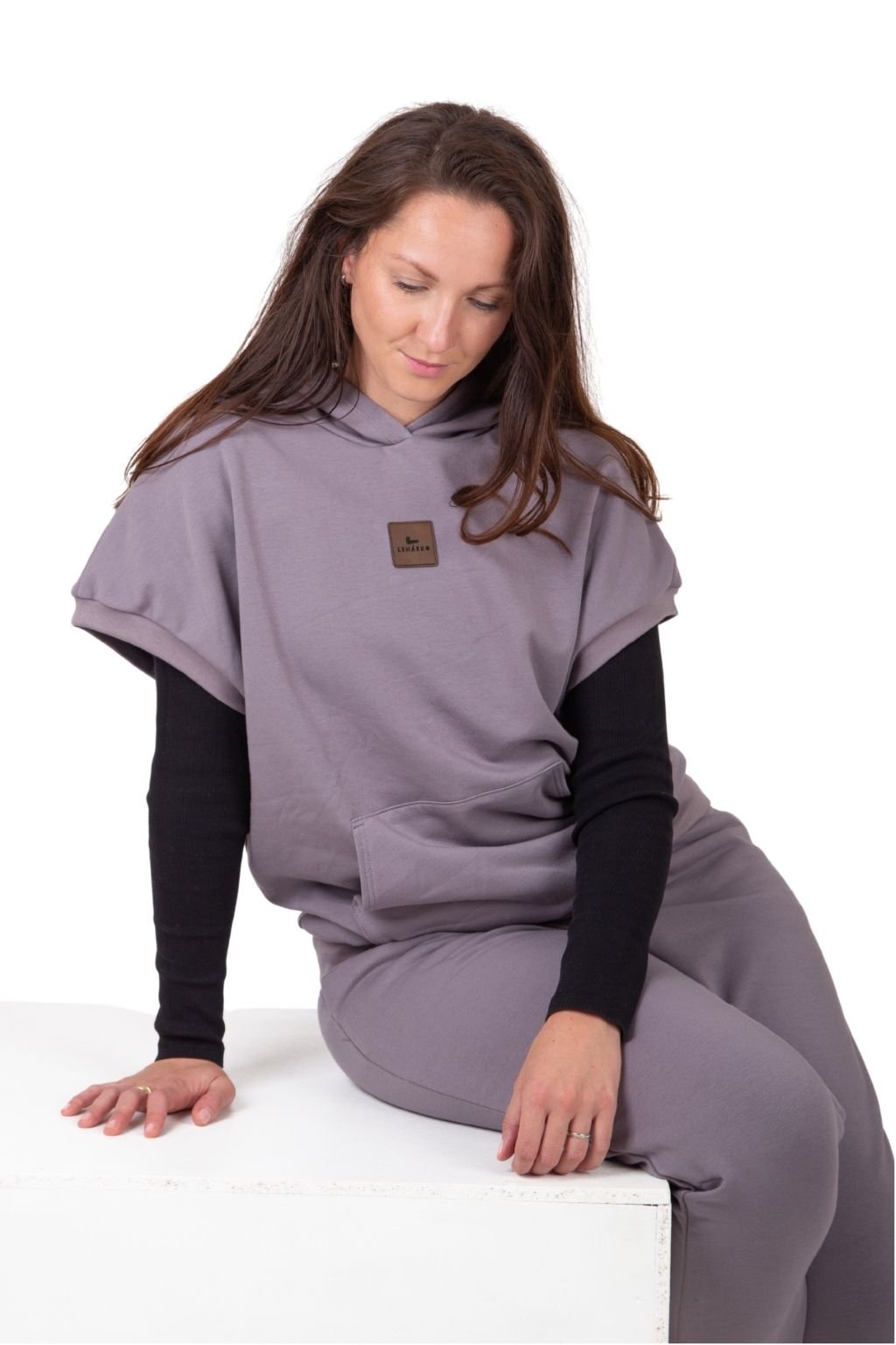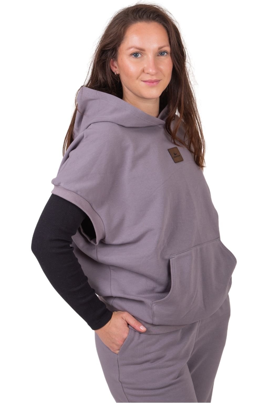 Dámská tepláková souprava taupe - vesta s kapucí a tepláky